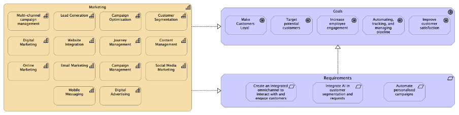 The capability is one of the essentials elements in designing your architecture in terms of what you can do and provide. In implementing a CRM tool, with the capabilities, we can define also what we provide to the customers and users. Nowadays, the role of architectural teams focusses on helping the execution of business strategy, thus it is not only planning and working on the business processes, but the architectural work extends from business process-functions improvement to the strategy execution. As a result, the architect’s main task is to align operations, business execution and infrastructure with the main strategy. In an architect’s view, business process, functions and technology gathered for a specific purpose, to address a specific concern and requirement of a stakeholder. In CRM, the governance board would like to emphasis on mobile sales and mobile marketing. In their mind, the priority should be given to the mobile first, however, in marketing and sales department, the managers may have a different focus: store improvement and visibility. For IT people, the question is about the cloud and microservices. Business and IT people should consider it from CRM capability model requirement, rather than software selection, deployment, improvement on purchase.